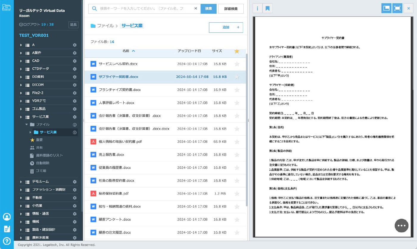 「リーガルテックVDR サービス業」は、サービス業界におけるデータ共有の課題に対して、安全で効率的なデータ管理・共有を実現し、業務の透明性と生産性を向上させる強力なツールです。